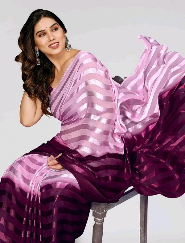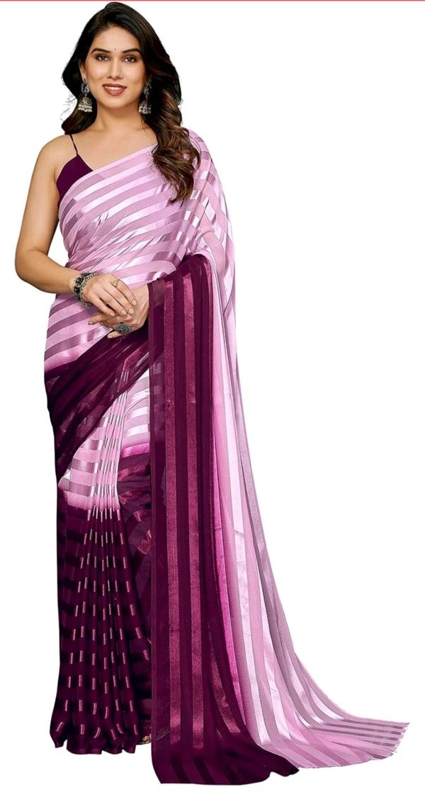 Anand Sarees Striped, Ombre, Self Design Bollywood Satin Saree