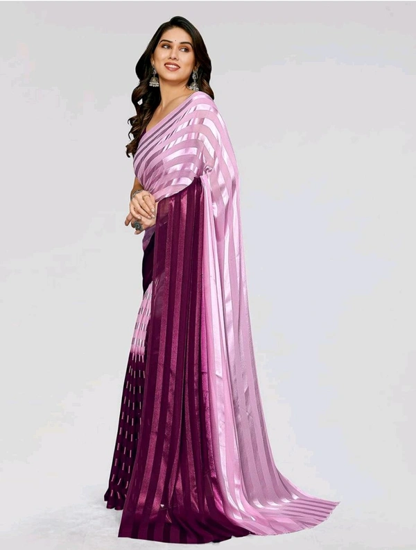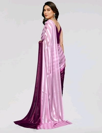 Satin Made Party Wear Silver Striped Bollywood Ombre Patterned 2 Color Shaded (Padding Work) Saree