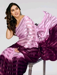 The Anand Sarees Striped, Ombre, Self Design Bollywood Satin Saree is more than just an outfit—it’s a statement piece that celebrates your individuality