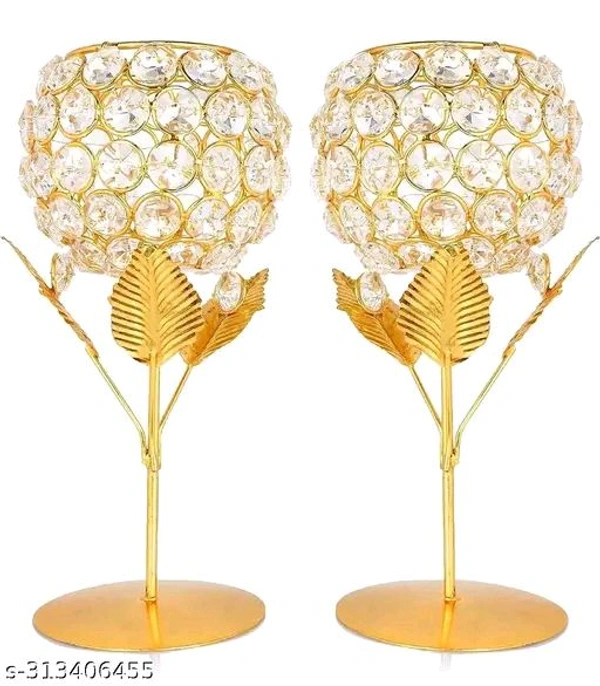 crystal diamond stone metal candle holder pack of 2 gold plated diwali